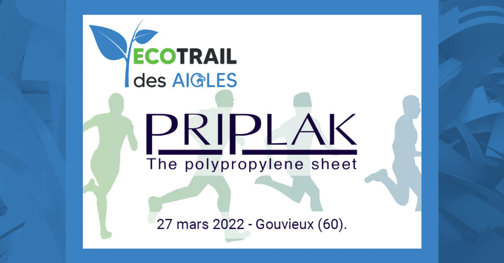 « PRIPLAK accompagne l’Ecotrail des Aigles qui aura lieu le 27 Mars 2022 à Gouvieux, venez nombreux ! » « Toute la signalétique de l’événement sera imprimée sur des feuilles PRIPLAK 100% recyclables »