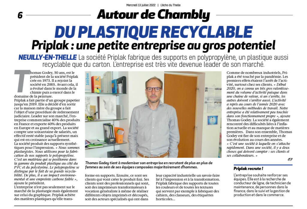 PRIPLAK mise à l’honneur au sein des territoires du Thelle. Pierre Desliens, président la Communauté de communes et Thérèse-Marie Descatoire, vice-présidente en charge du développement économique, accompagnés par les équipes du service développement économique, ont ainsi pu rencontrer Thomas Godey, président, et Pascal Verschuere, directeur administratif et financier de la société Priplak, le temps d’une […]